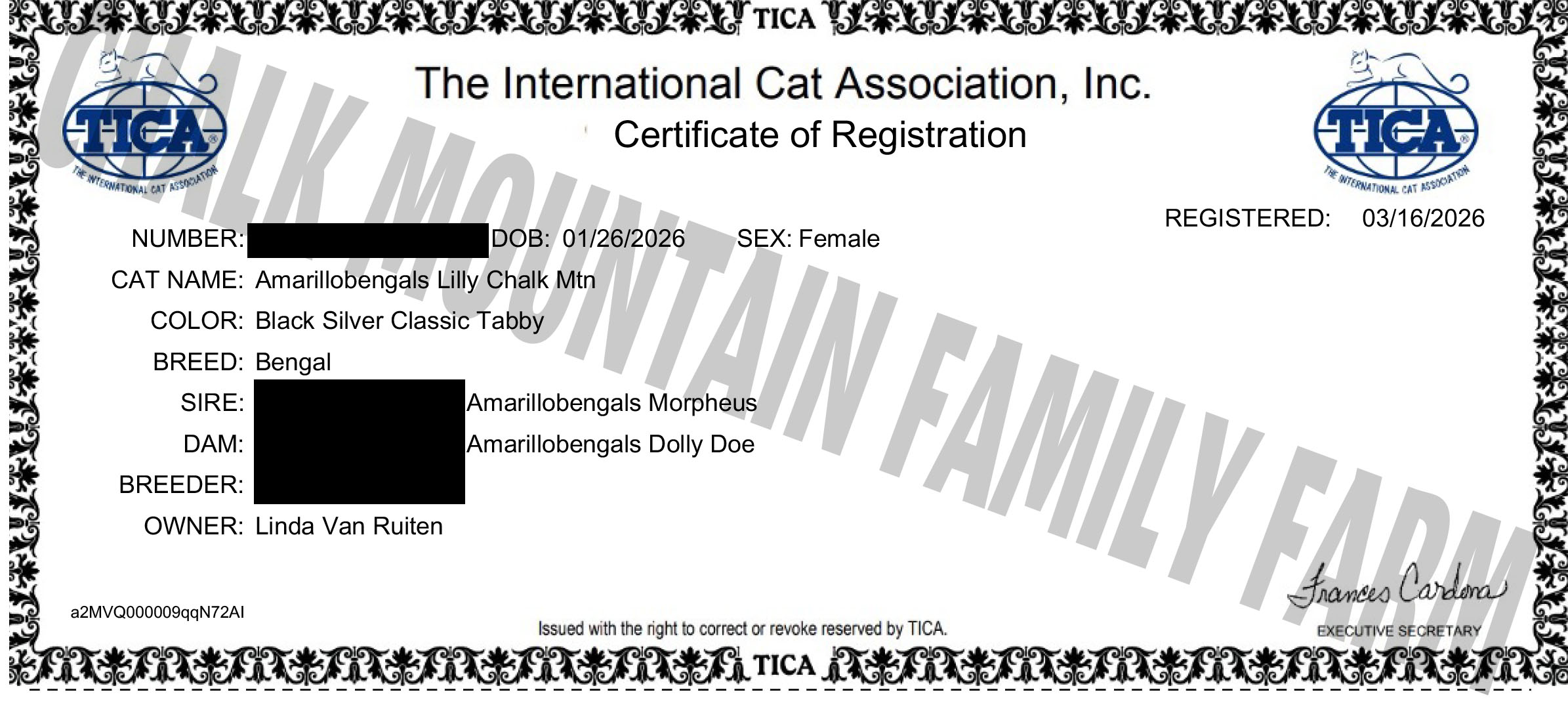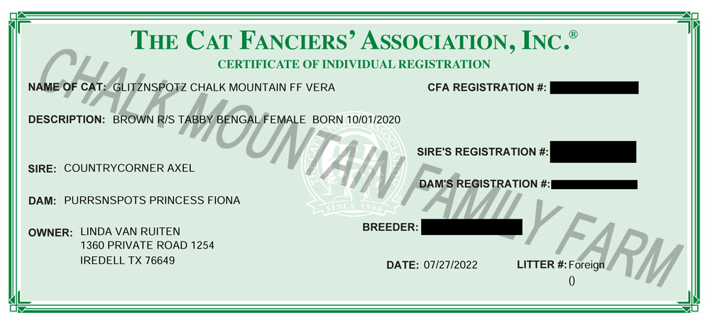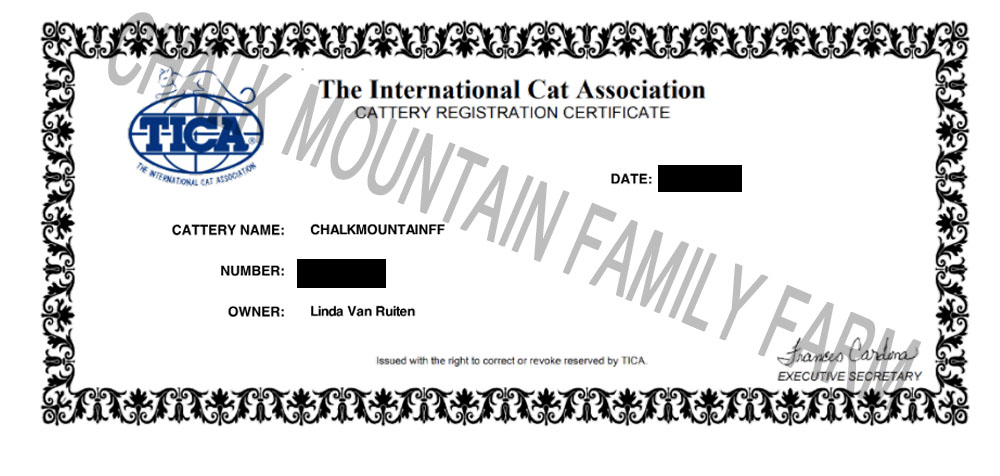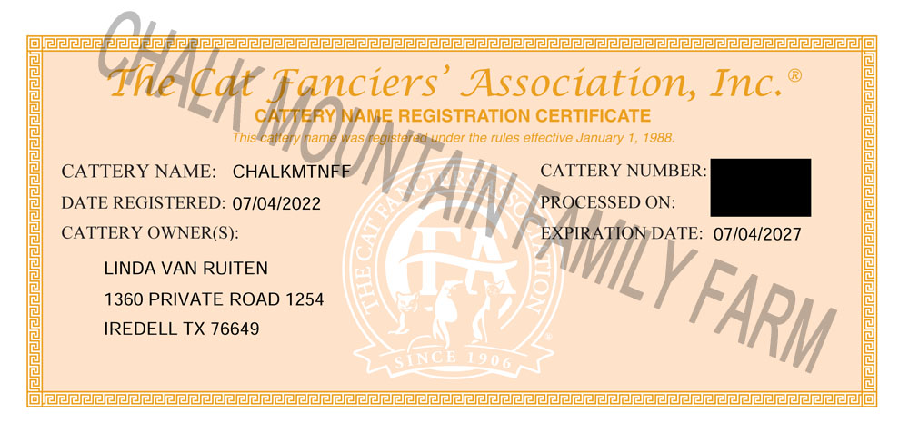 We are a registered cattery with both TICA and CFA.CFA Registration