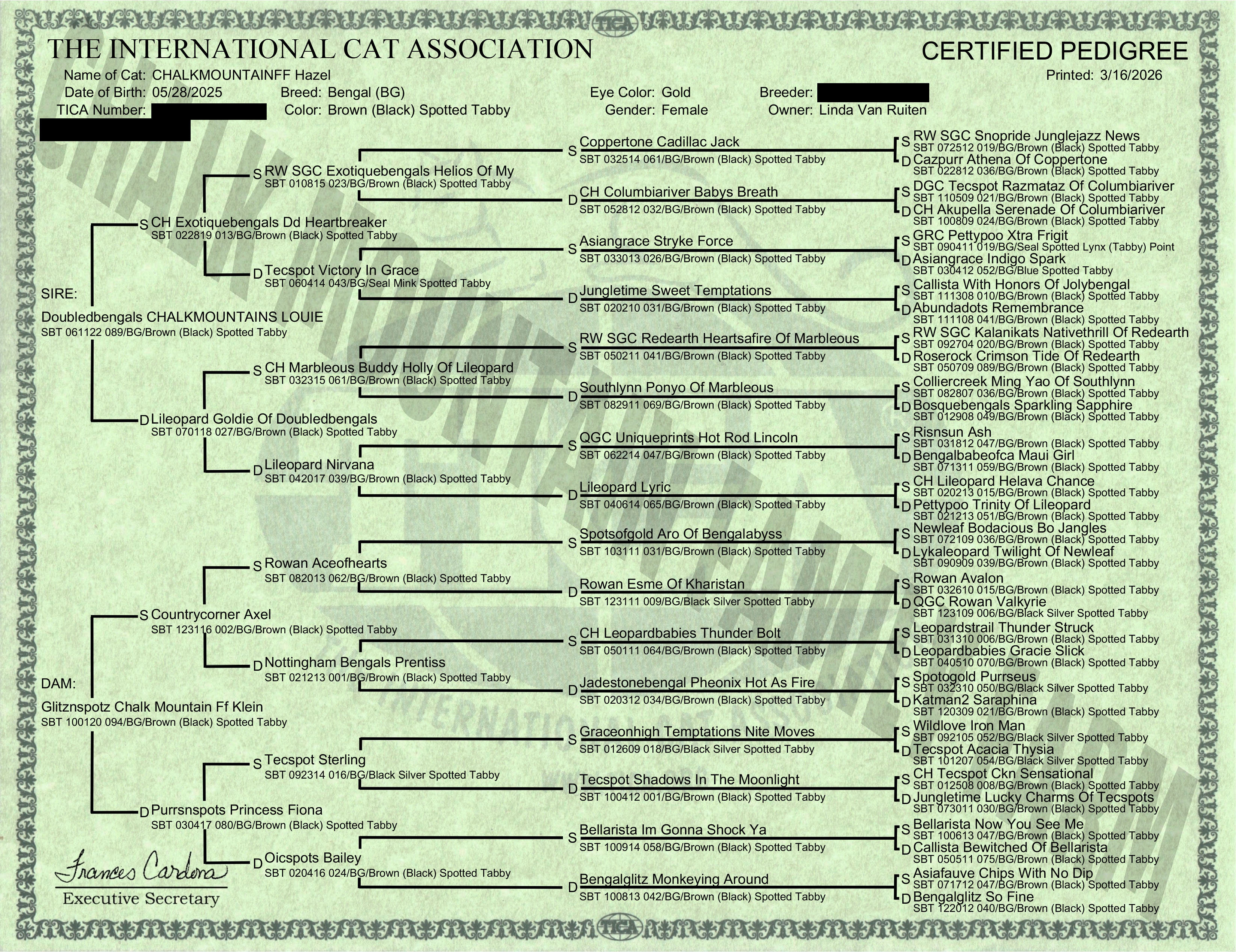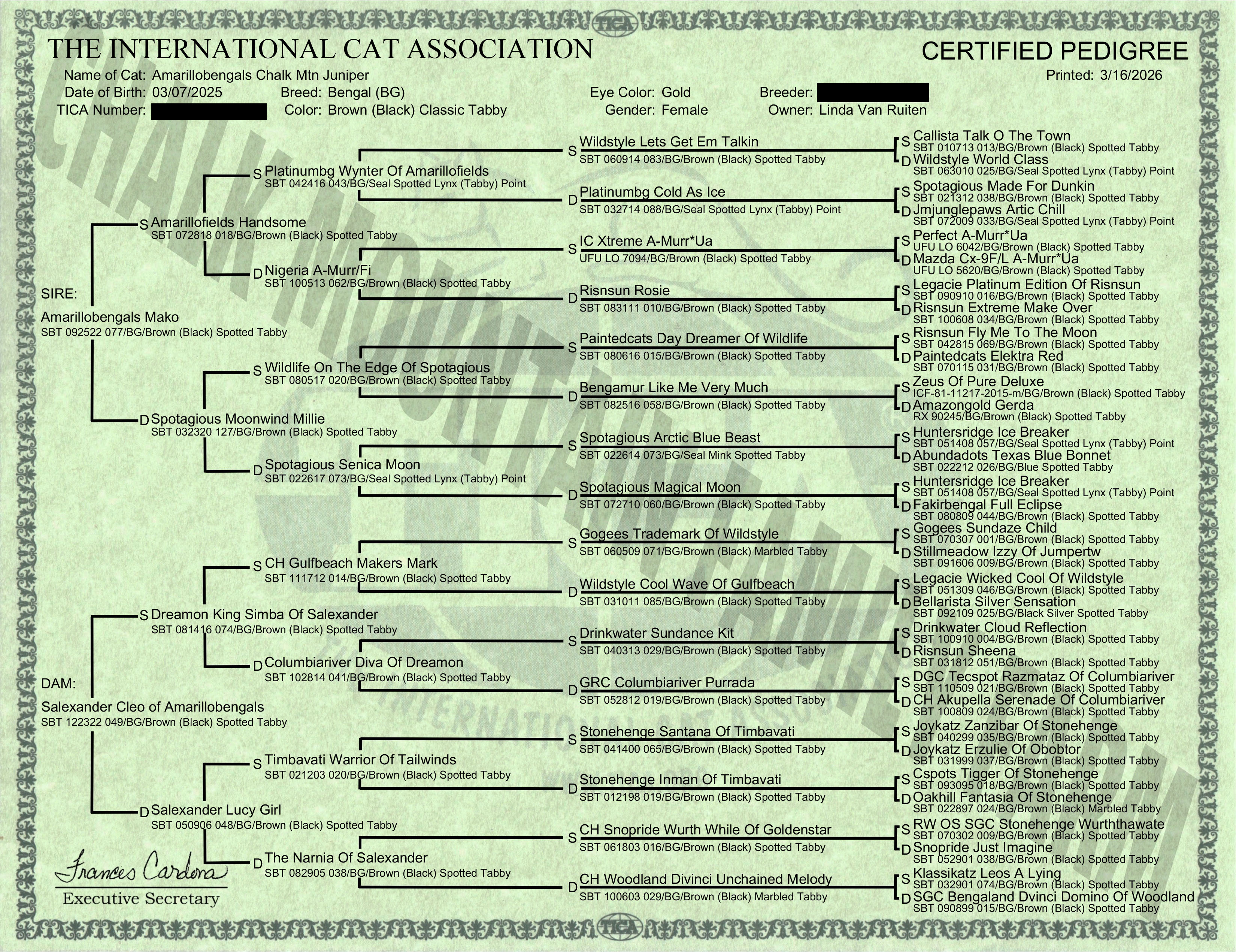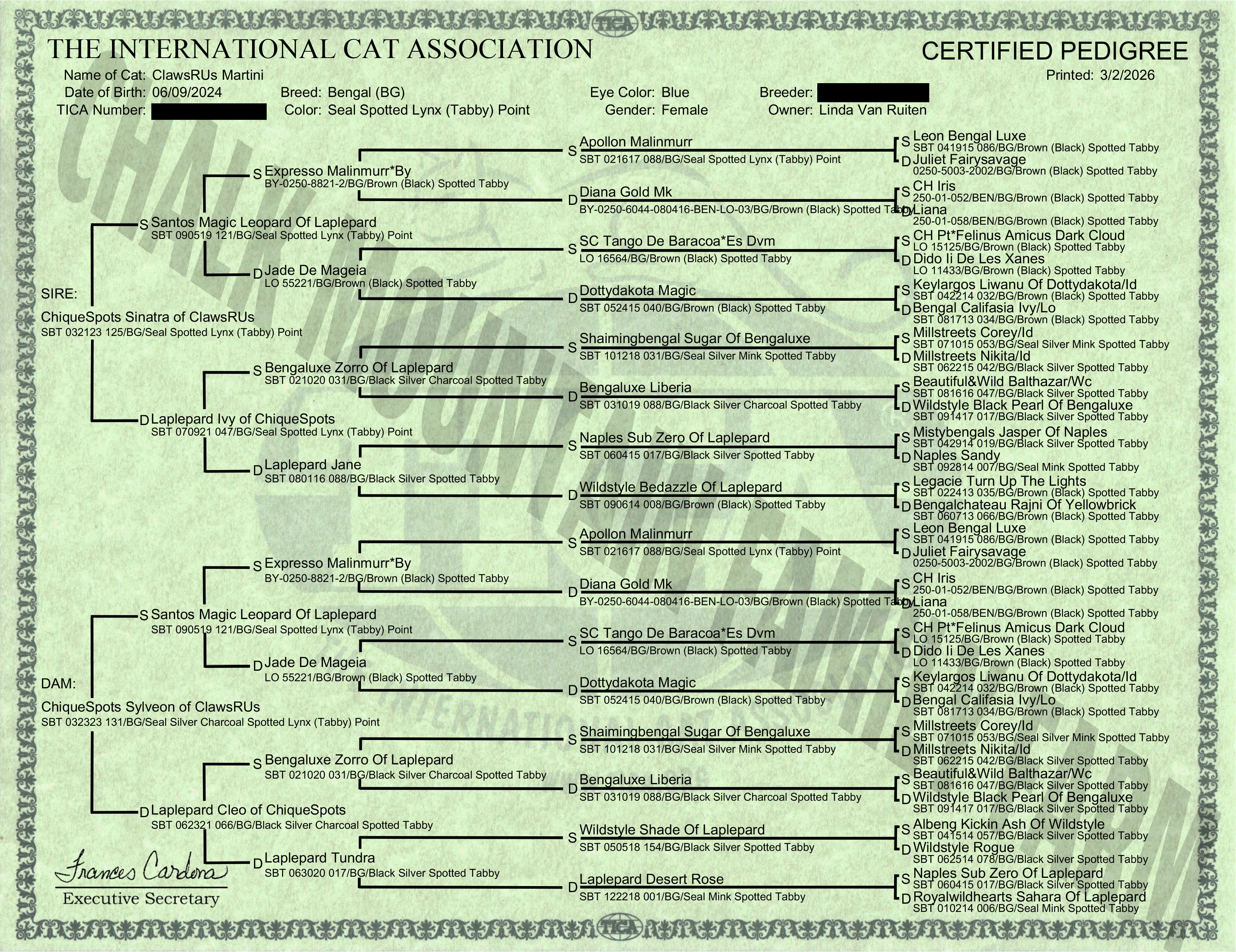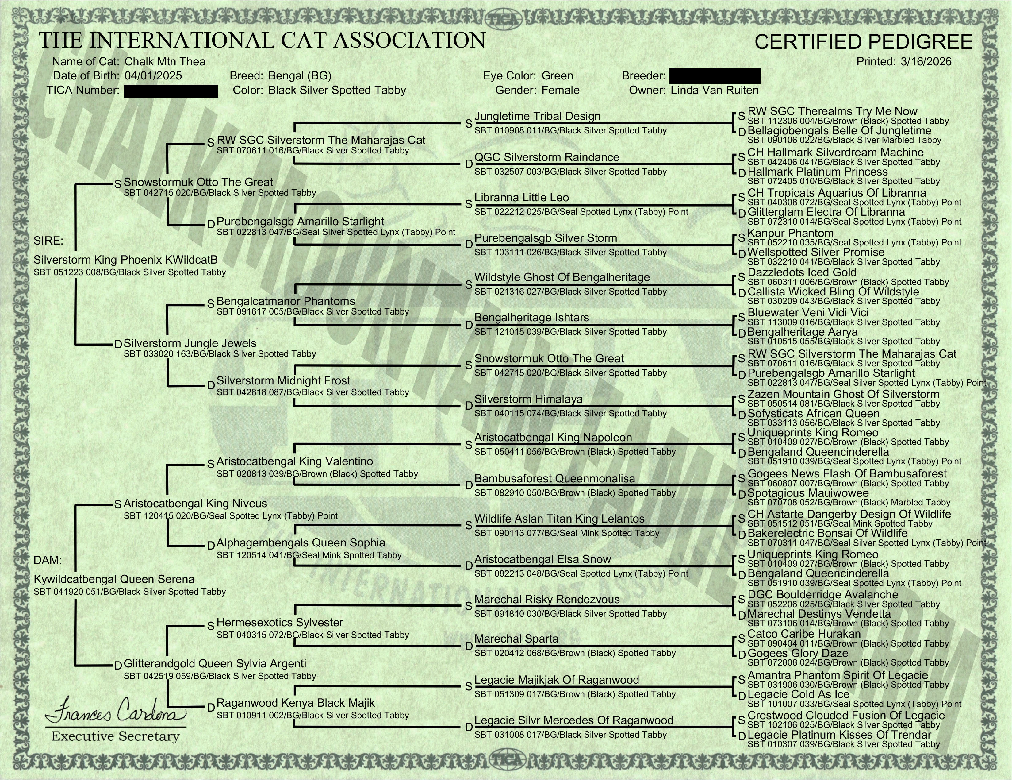 Registration & Pedigree: TICA RegistrationPedigree