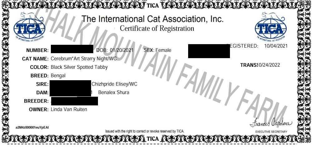 (Retired)Registration & Pedigree: TICA Registration
