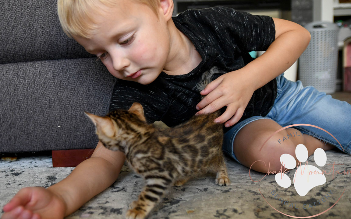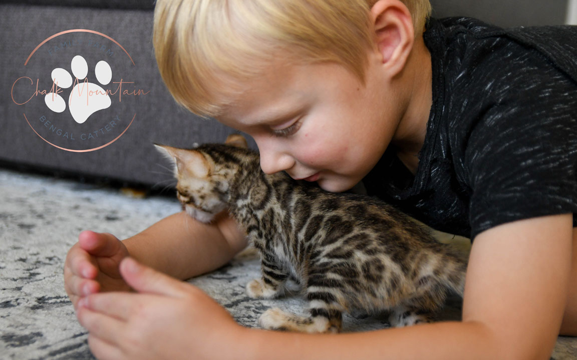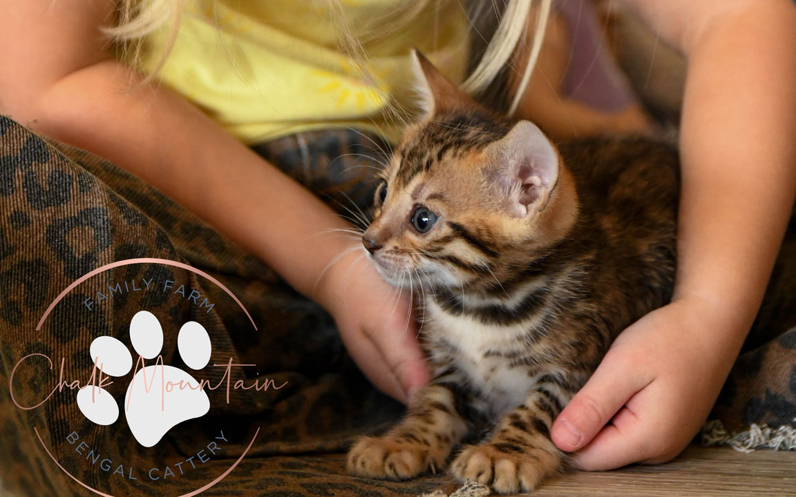All of our bengal kings and queens were chosen with care. We choose cats who are a strong representation of the bengal breed, but we also specifically look for bengals who's kittens would make great additions to your family. We have a large family with several young children - we understand the importance of socializing our cats and kittens so that they can be a family friendly pet. All of our kings and queens are an integral part of our own family, and while your kitten is with us - it is a part of our family as well.